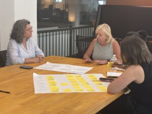 [PHOTOS: Top: small group cohort members plan out and present their respective campaign ideas. Bottom: team huddle and break leaving bootcamp]