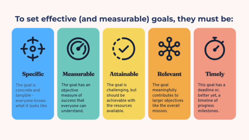 Knowing your goals ahead of time will also help you measure success against your milestones and timeline.