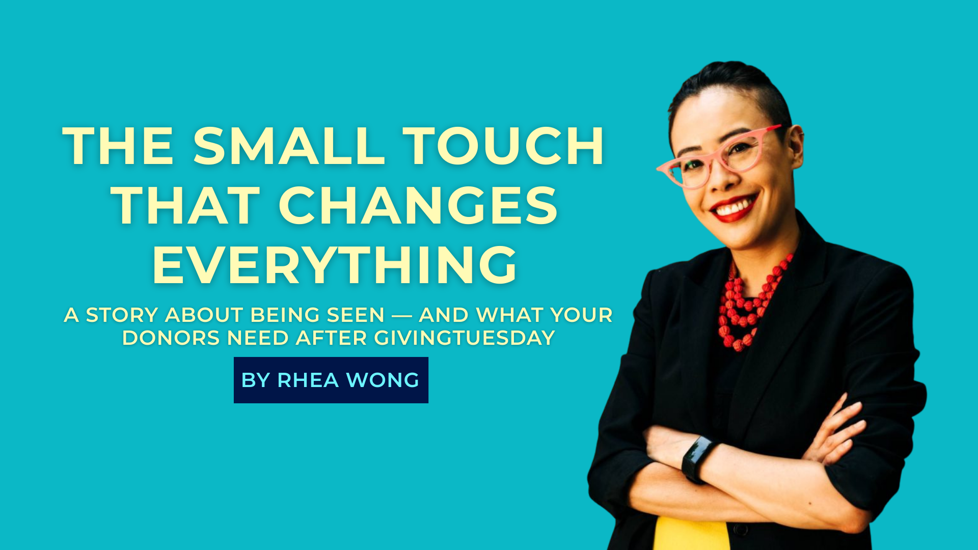 At GivingTuesday, we hear from countless nonprofit leaders about the challenge of keeping new supporters engaged after the big day. Stewardship doesn’t have to be complicated, but it does need to be intentional. That’s why we’re excited to share this guest post from nonprofit coach and author Rhea Wong, who reminds us that thoughtful, human connection is one of the most powerful tools you have in the days and weeks after GivingTuesday. Her story offers a simple but meaningful lens for understanding what donors really want and how small touches can spark long-term loyalty.